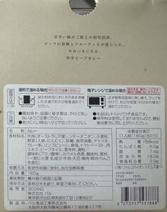 - 原材料名:牛肉(オーストラリア産)、ソテーオニオン、小麦粉、野菜(人参、にんにく)、砂糖、食用油脂、チャツネ、カレー粉、リンゴピューレ、食塩、トマトペースト、肉エキス、ビーフオイル、香辛料、澱粉/調味料(アミノ酸等)、カラメル色素、酸味料、香料、(一部に小麦・乳成分・牛肉・大豆・鶏肉・豚肉・りんごを含む)