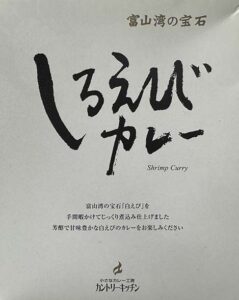 - キャッチコピー:富山湾の宝石『白えび』を 手間暇かけてじっくり煮込み仕上げました 芳醇で甘味豊かな白えびのカレーをお楽しみください